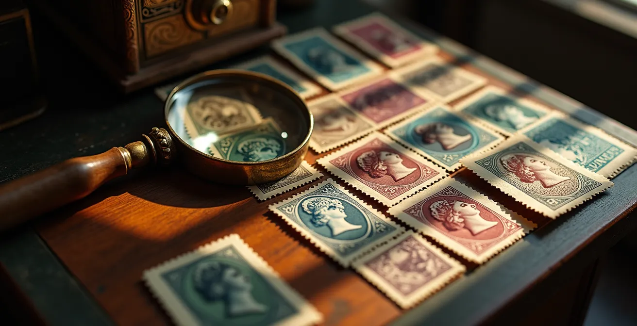 La quête des micro-signatures est l’un des plaisirs les plus subtils de la philatélie, transformant le collectionneur en détective. Les graveurs, véritables artistes de l’infiniment petit, ont souvent pris l’habitude de dissimuler leurs initiales ou leur nom dans les détails de leur œuvre. Ce geste, entre fierté d’artisan et clin d’œil, est une affirmation de l’individu au sein d’une commande officielle et standardisée. Pour les débusquer, une simple observation ne suffit pas ; il faut s’armer de patience, d’une bonne loupe et savoir où porter son regard.